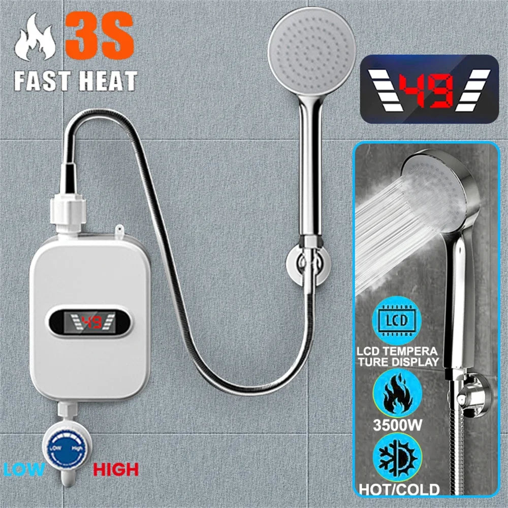 220V Bathroom Faucet Instant Water Heater Shower EU Plug Hot Water Heater 3500W Digital Display For Country House Cottage Hotel
