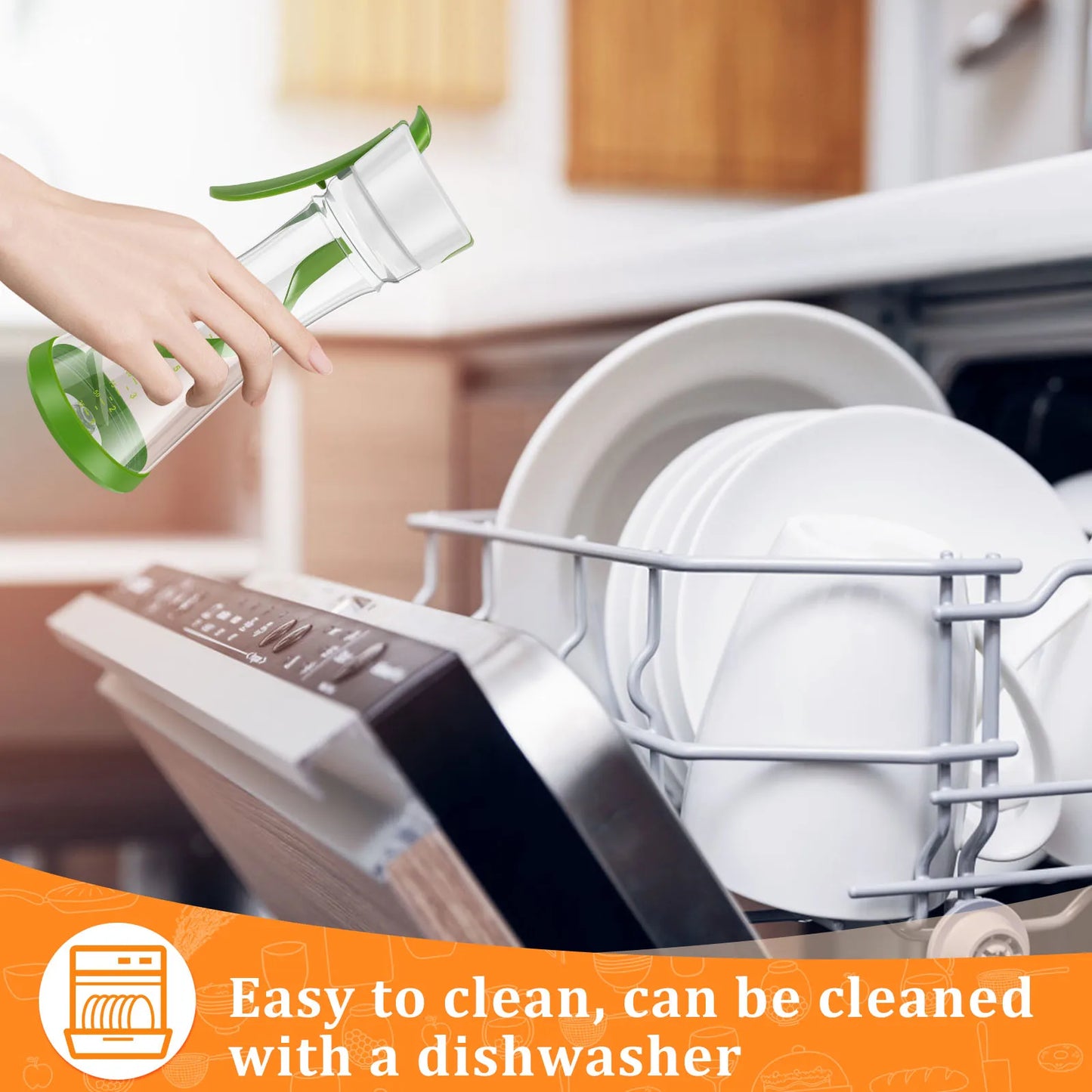 [Easy Mixing] This salad dressing shaker requires no batteries. And easy to use. Just grab and start stirring with a twist mixer. Simply press the button, it can make even mixing. Pour the dressing evenly over the salad.