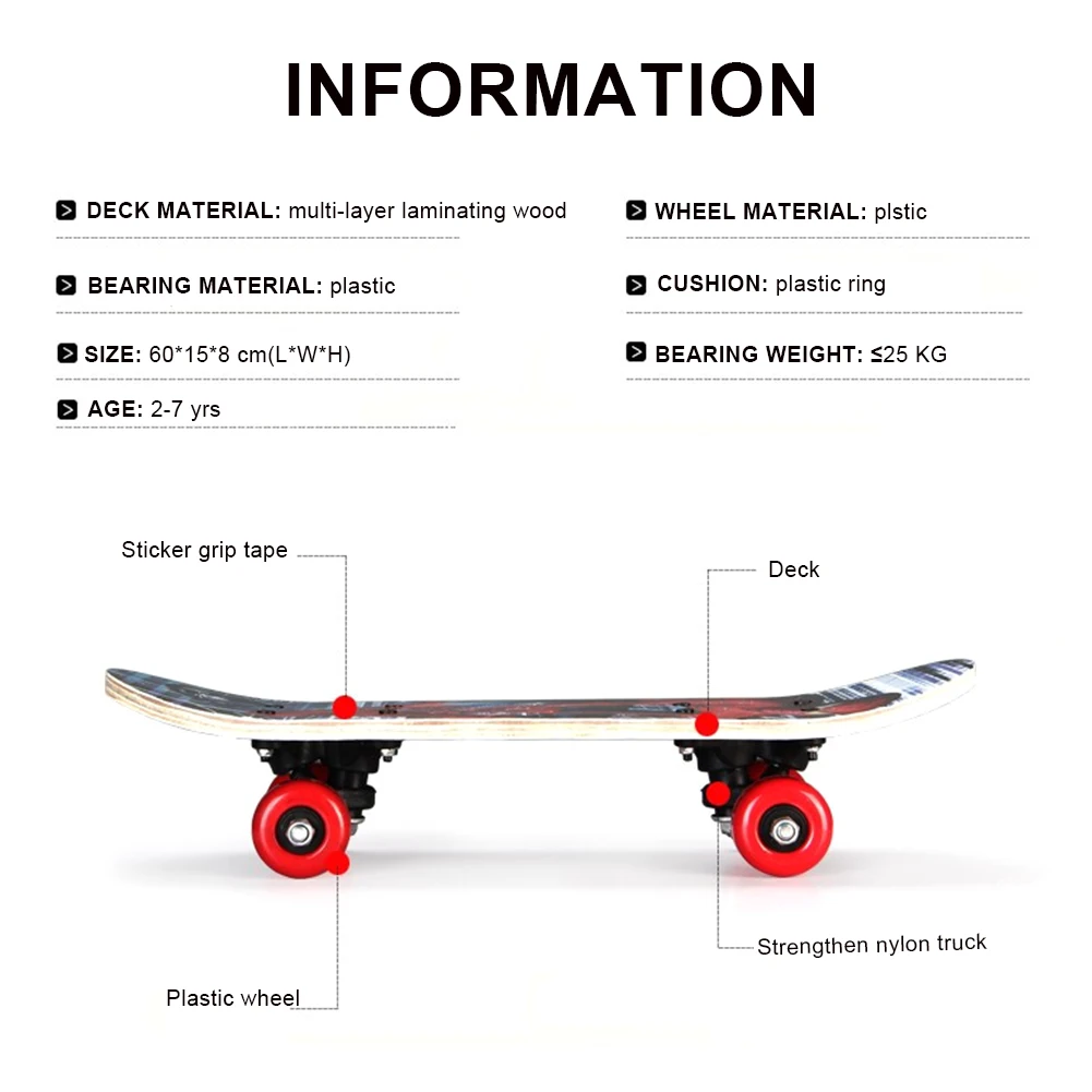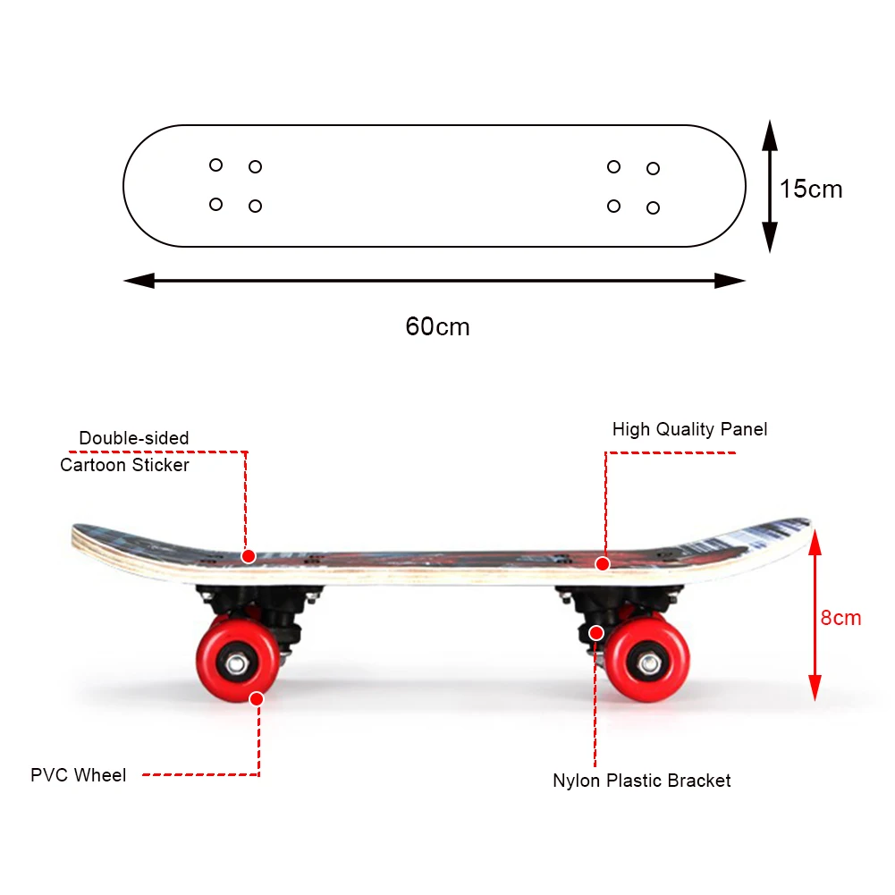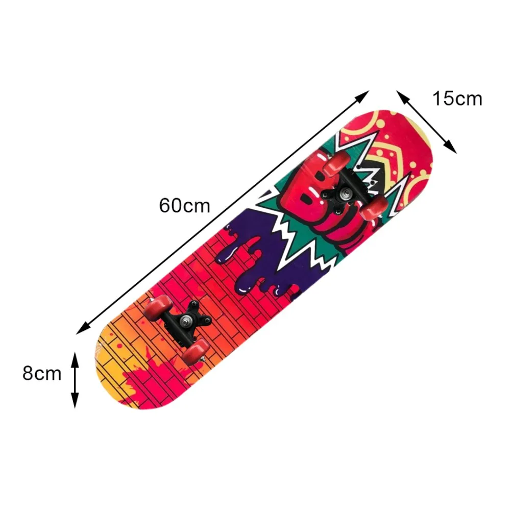 60cm Four-Wheeled Skateboard for Beginners and Kids Wood Scooters Double Deck Skating Board graffiti skateboard road brush