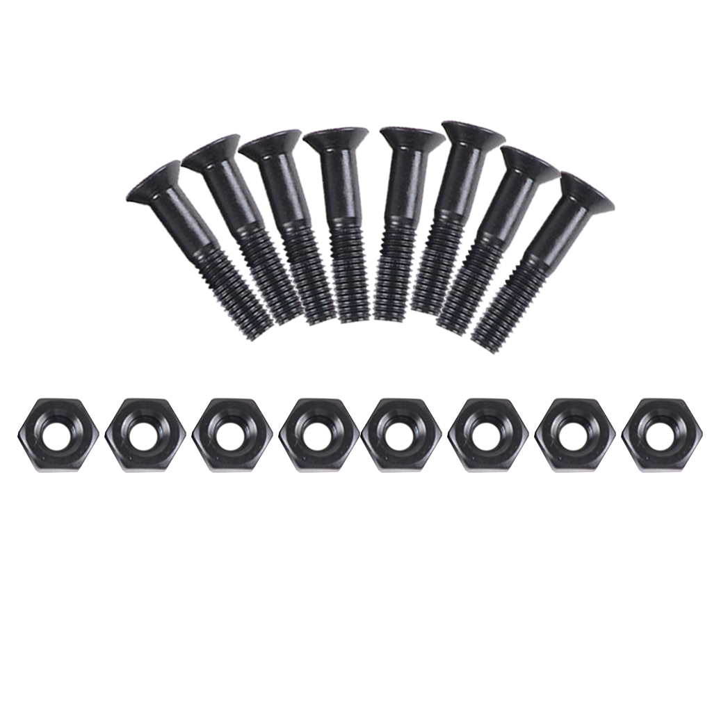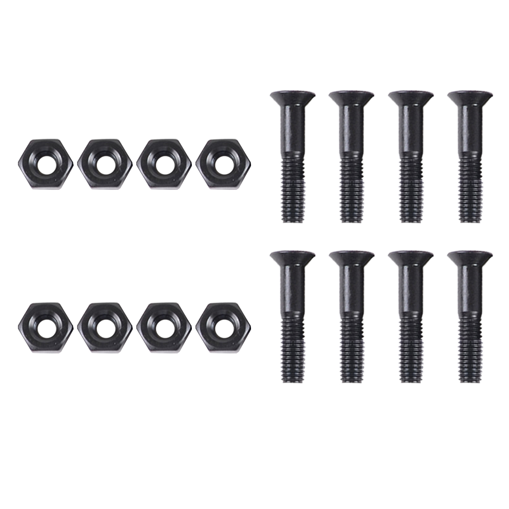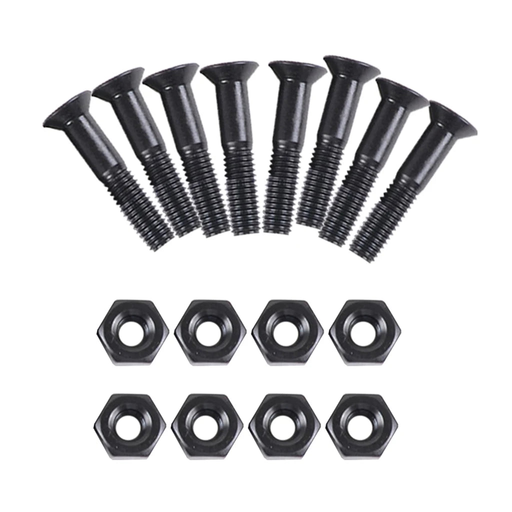8 Pieces Skateboard 25mm Truck Bolts Screws with Nuts Set Hardware Truck Screws Skateboard Skate Board Accessories- Black