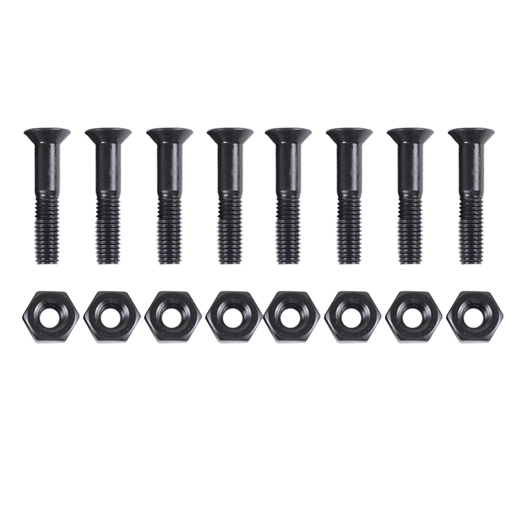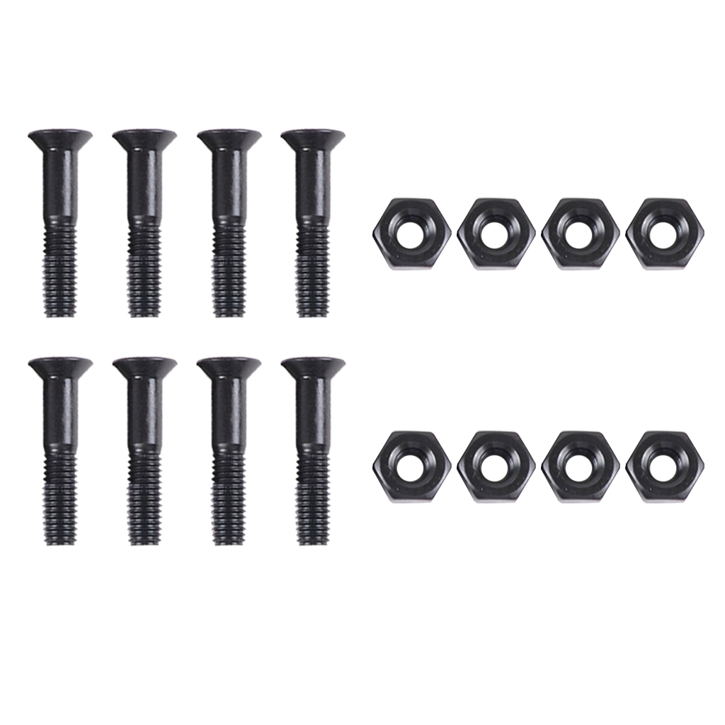 8 pieces 25mm black skateboard screws with nuts set per package.