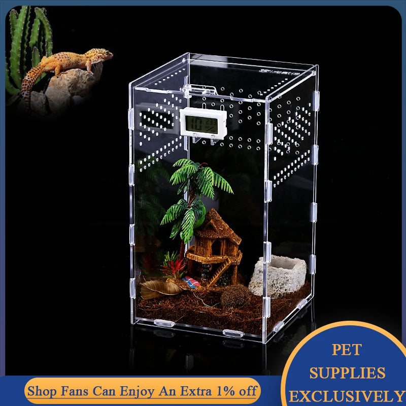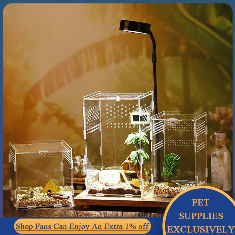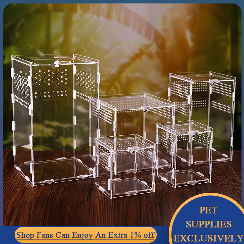 Acrylic Terrarium DIY Breeding Box for Reptile Habitat Amphibian Cricket Turtle Spider Snail Glass Shelter Insect Box for Spider