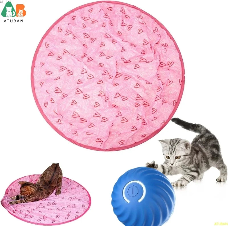 ATUBAN Cat Toys for Indoor Cats Ball Jumping and Rolling in Pouch,Hide Seek Cat Mat Toy Natural Hunting Instincts Kitten Toys