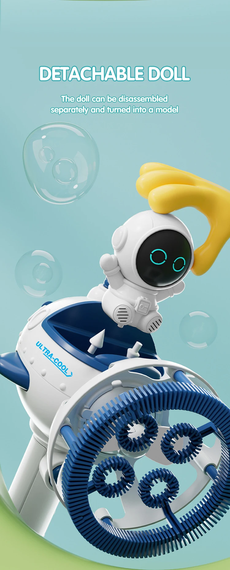 Features: Detachable Astronaut Figurine, with 2 Nozzles, Portable