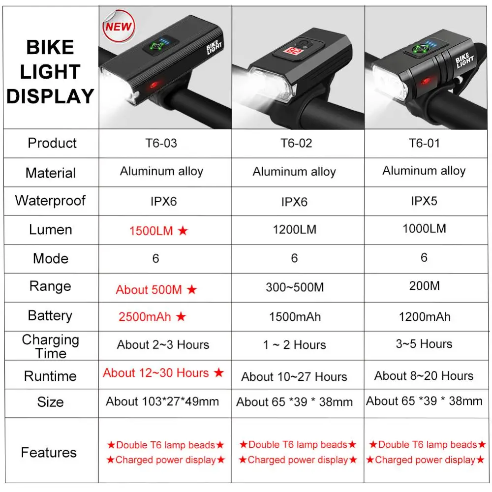 【SUPER BRIGHT & LONG RUNTIME】The bicycle front light has 3 LEDs with a maximum output of 2000 lumens,illuminating the road you ride at night.The running time of the headlight is 5-20 hours,and the running time of the taillight is 8-200 hours,which can meet your long time riding lighting needs.