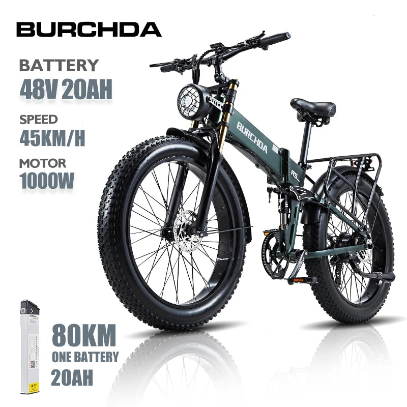 【1000W Brushless Motor】The BURCHDA R5PRO electric bike is equipped with powerful 48V 1000W brushless gear motor, it can easily assist you to travel at 45KM/H~50KM/H, this ebike provides super strong power for you to conquer every road in your trip.