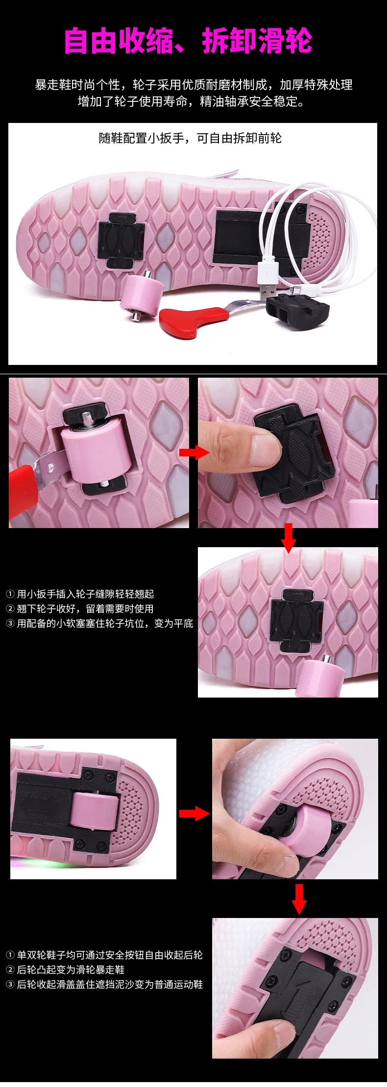Children's Roller Sneaker Outdoor Indoor Skating Shoes Detachable Kids Glitter Skates Breathable Blade Boy Flying Shoes