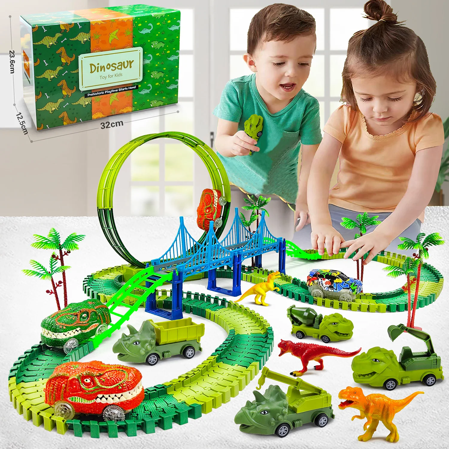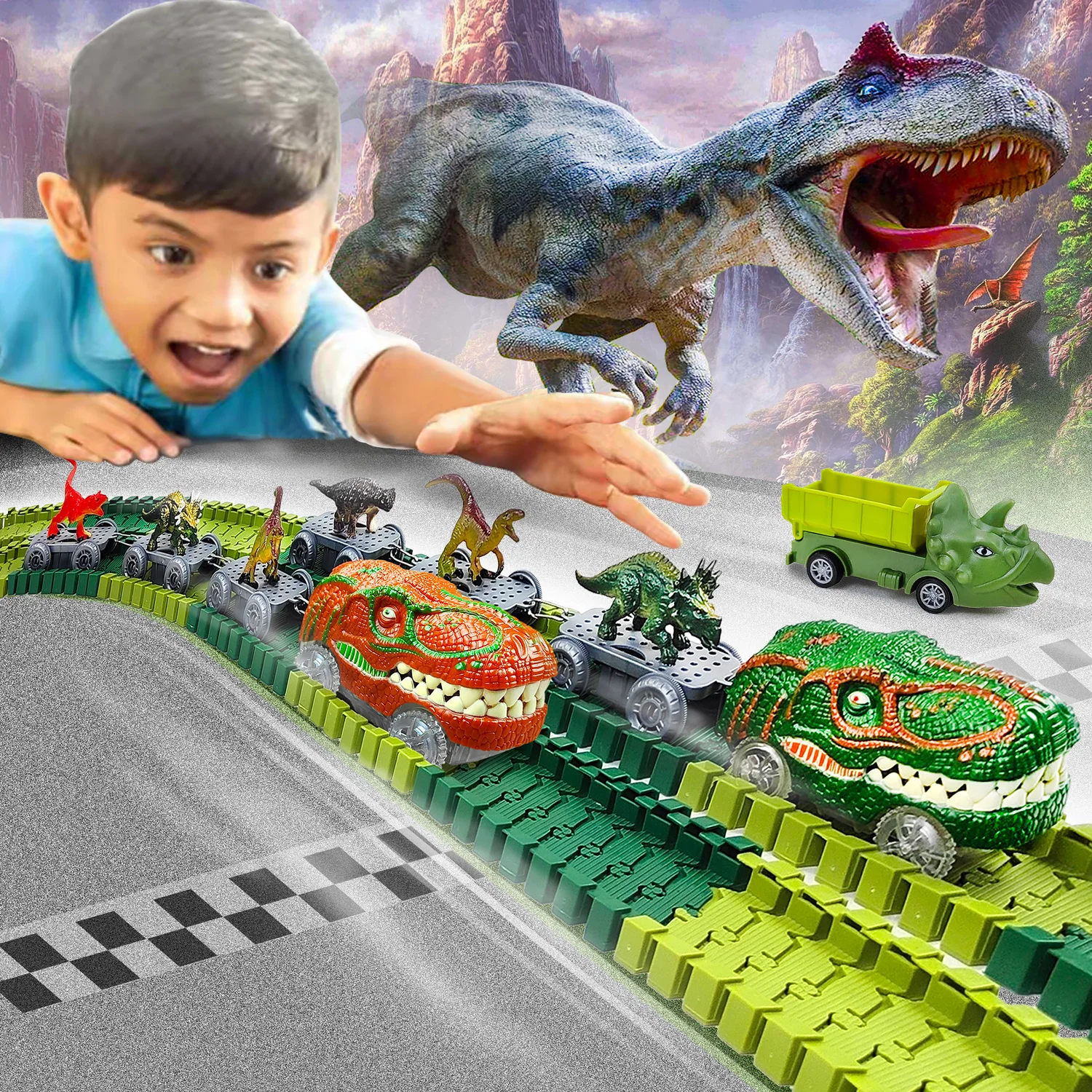 Dinosaur Toys Race Track Toy Set - Create A Dinosaur World Race Flexible Tracks,Gift for Kids Ages 3 4 5 6+Year Old Boys Girls