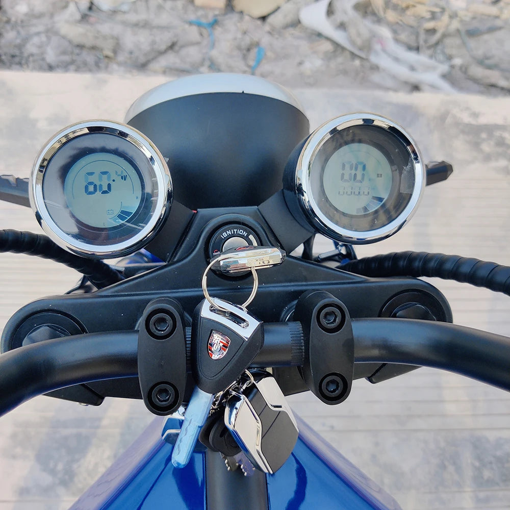 High-speed 1500W aluminum wheel motor, strong climbing power. The maximum speed of the electric tricycle can reach 30-45KM/H. 60V20AH lithium battery, charging mileage is 35-50KM. The motorcycle has 2 battery compartments, you can buy additional batteries to increase the mileage.