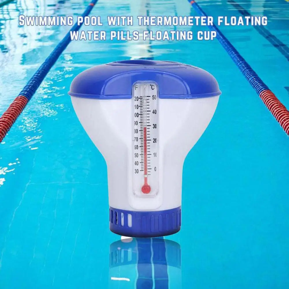 Floating Pills Disinfecting Box With Thermometer Automatic Dispenser Drug Chemical Swimming Pool Chlorine Floating Dispense E5i1