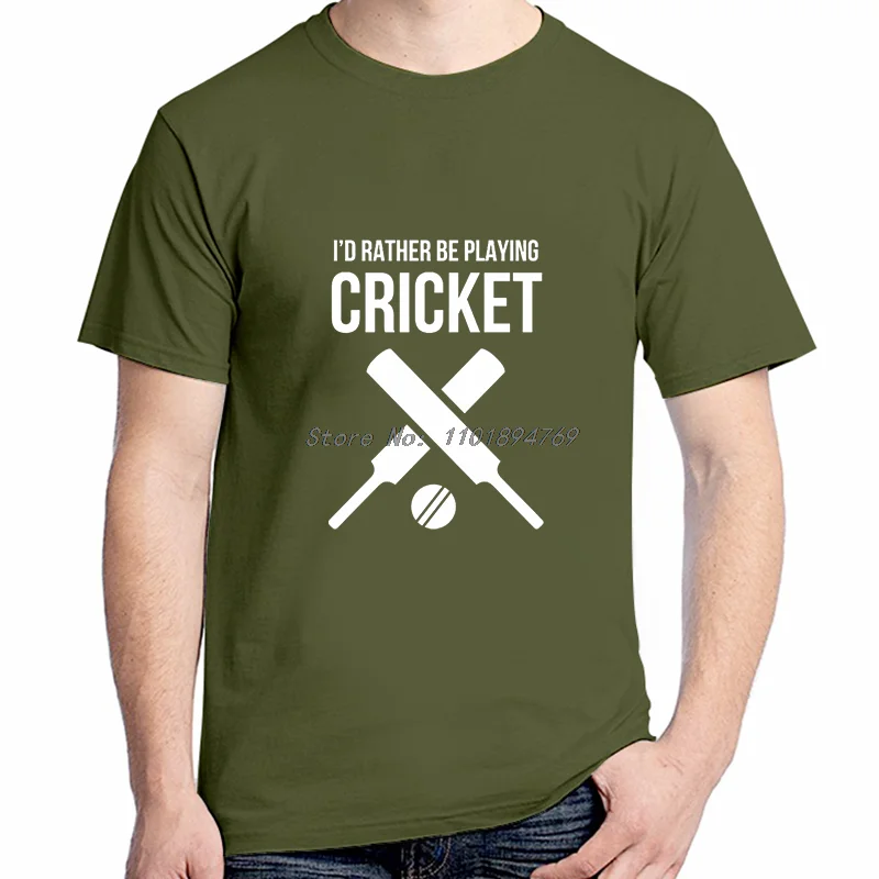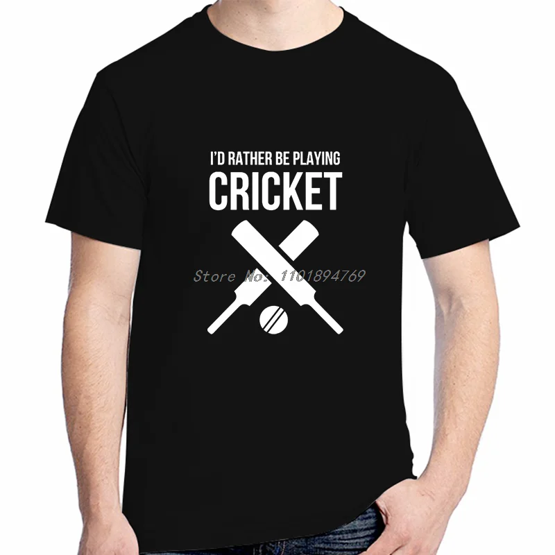 I'd Rather Be Playing Cricket Summer Fashion Cotton Graphic T Shirts Short Sleeve T-Shirts High Quality Tees Tops Mens Clothes