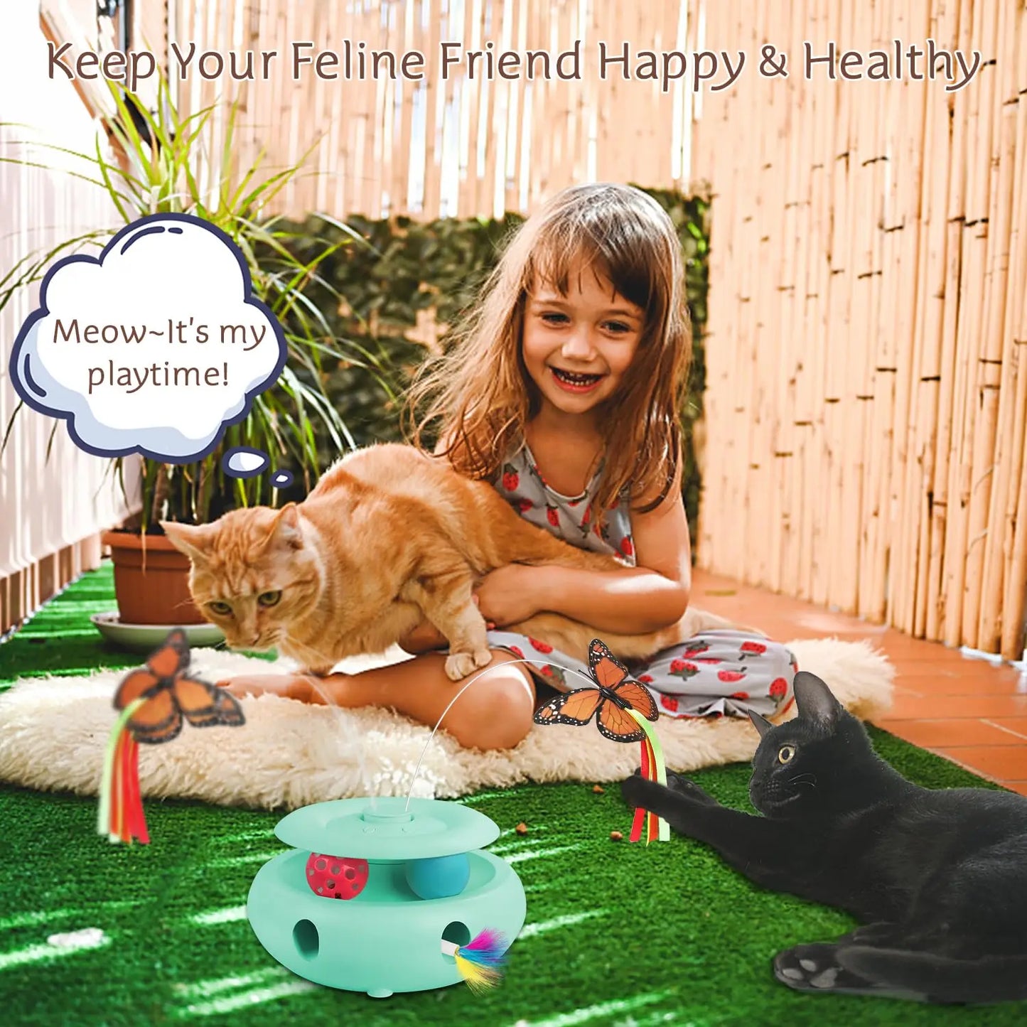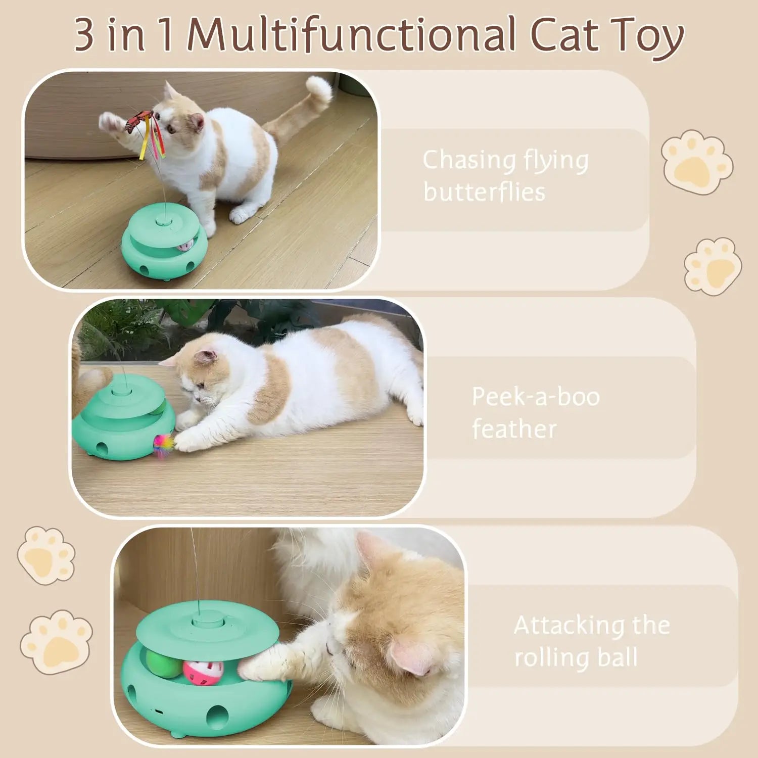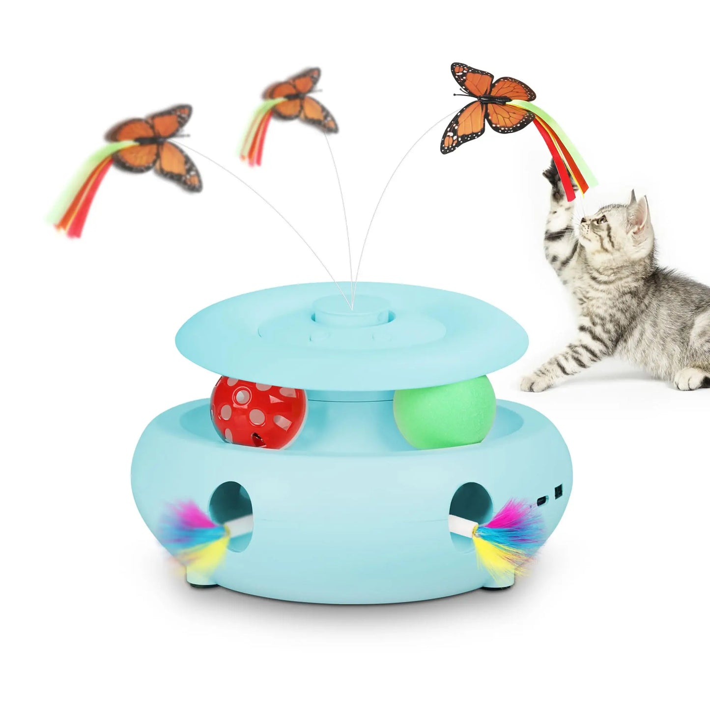 Interactive Cat Toy Automatic Cat Toys for Indoor Cats, 3-in-1 Electric Cat Toy USB Rechargeable, Kitten Toy Cat Exercise Toys