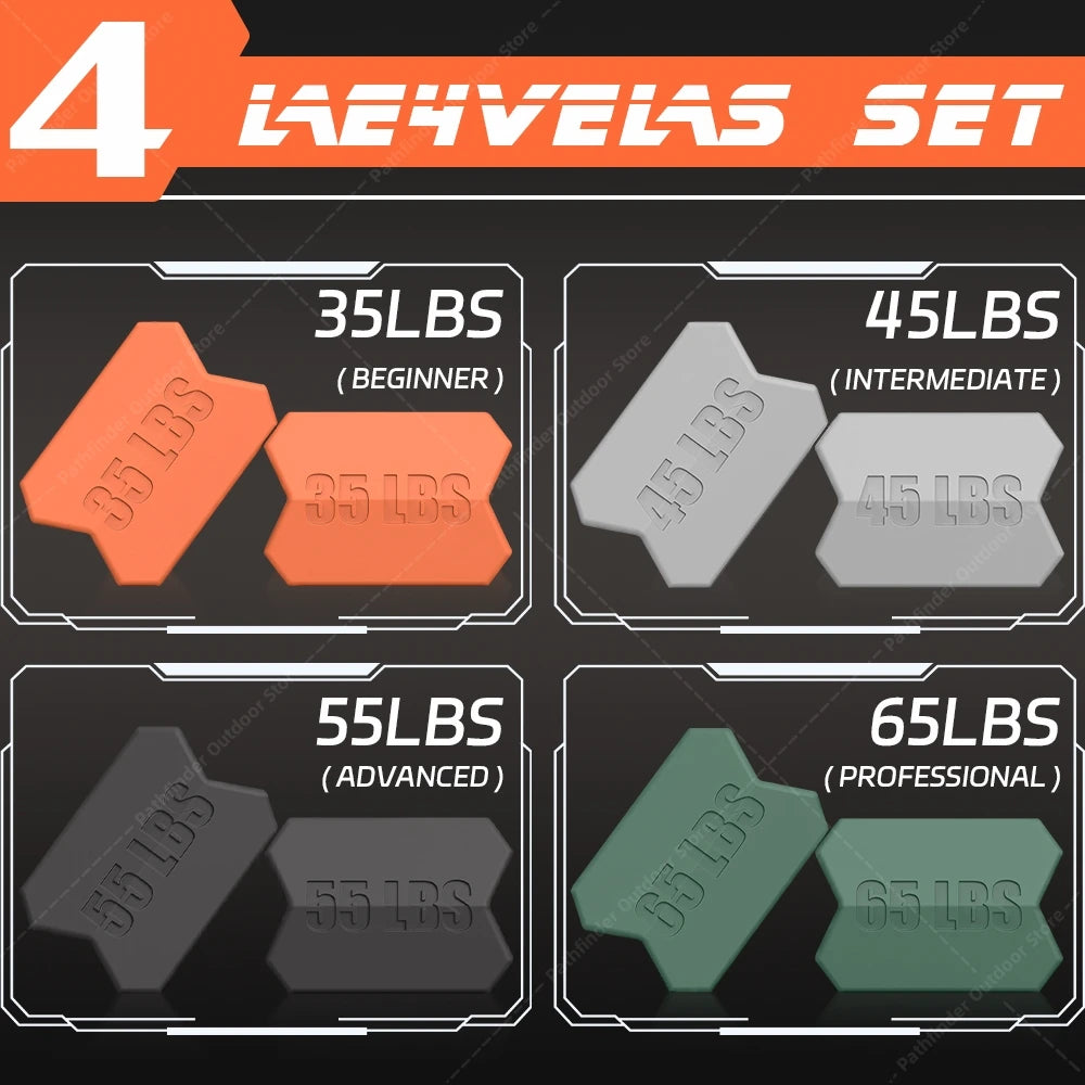 The progressive exercise set is suitable for beginner, intermediate, advanced and expert users(35lb,45lb,55lb,65lb), providing you with sufficient preparation for each stage of your exercises.