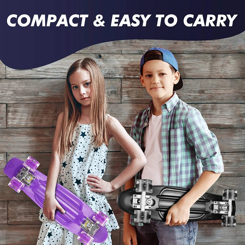 Jusenda Skateboard 22in Mini Cruiser Children's Penny Board Pastel Longboard Fish Skate Board Flashing Wheels Banana Skateboard