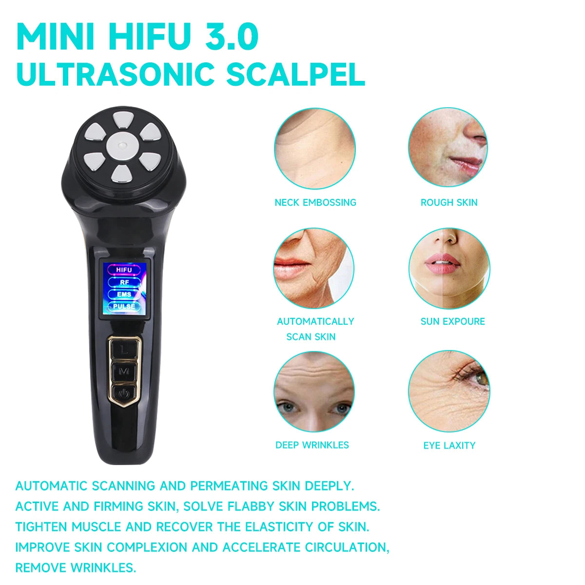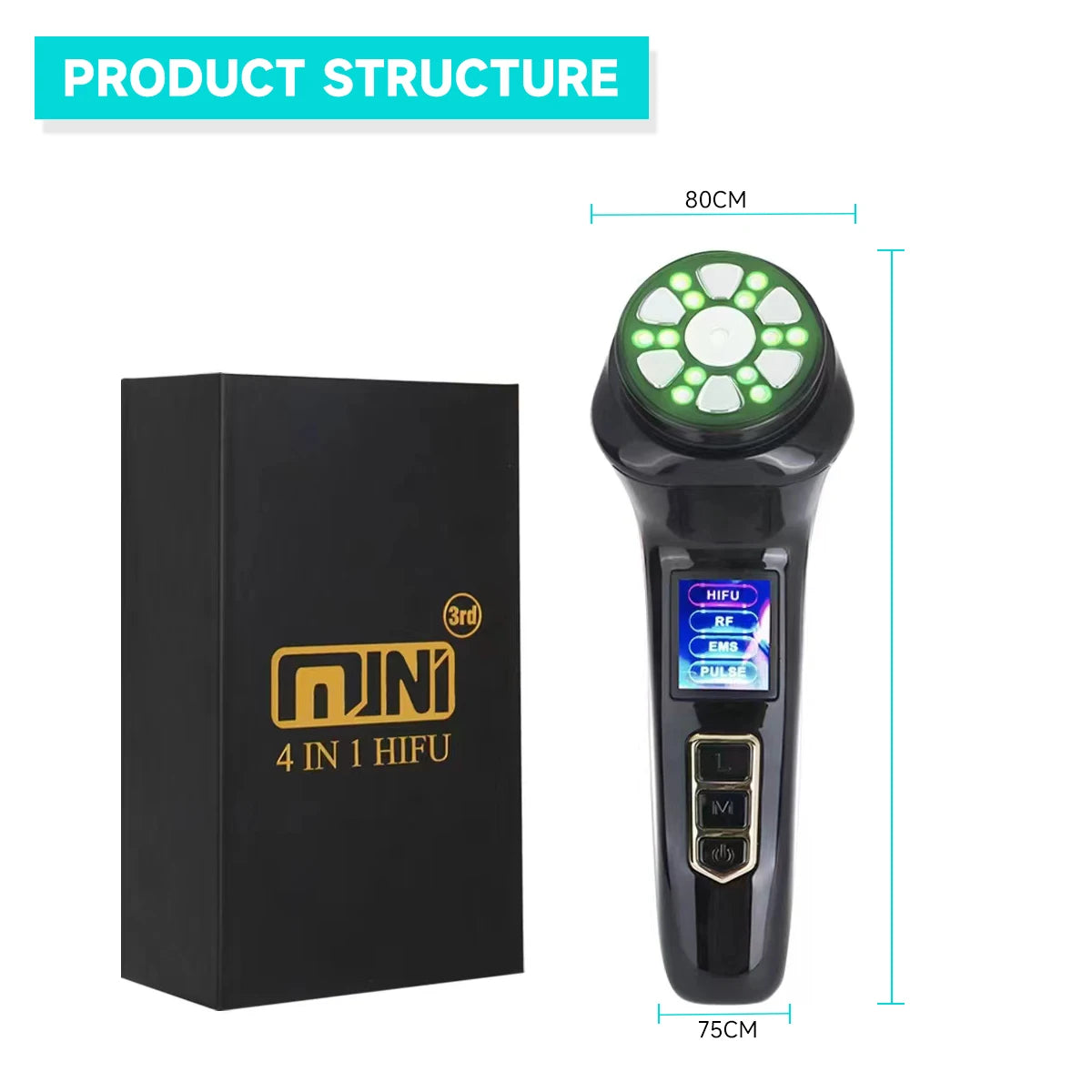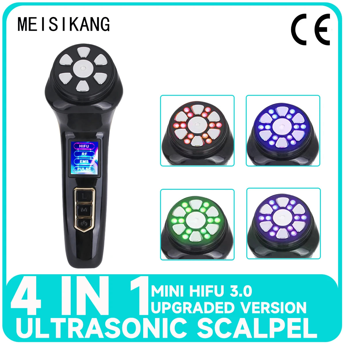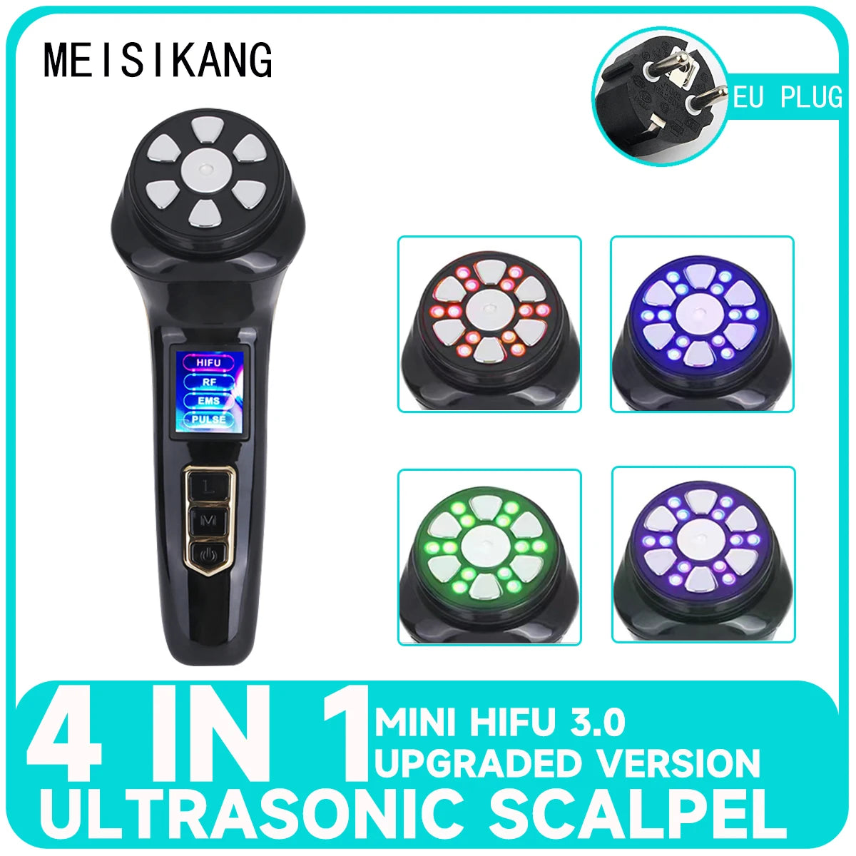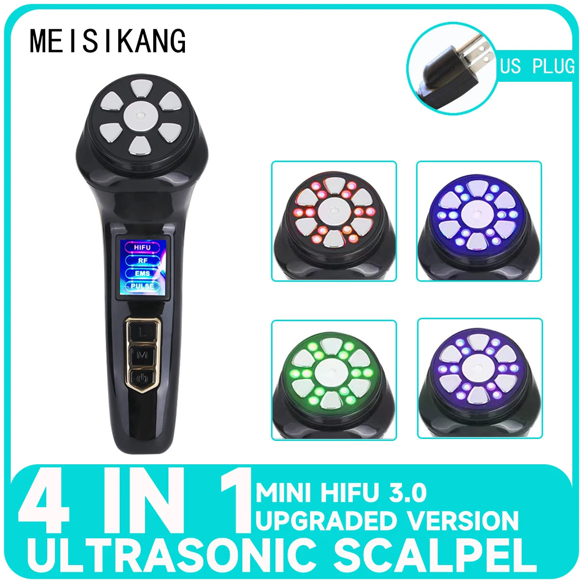 MEISIKANG Home Use Black Mini HIFU Machine 4 in 1 RF Ultrasound Skin Care Firming Wrinkle Remove Face Lifting Beauty Device