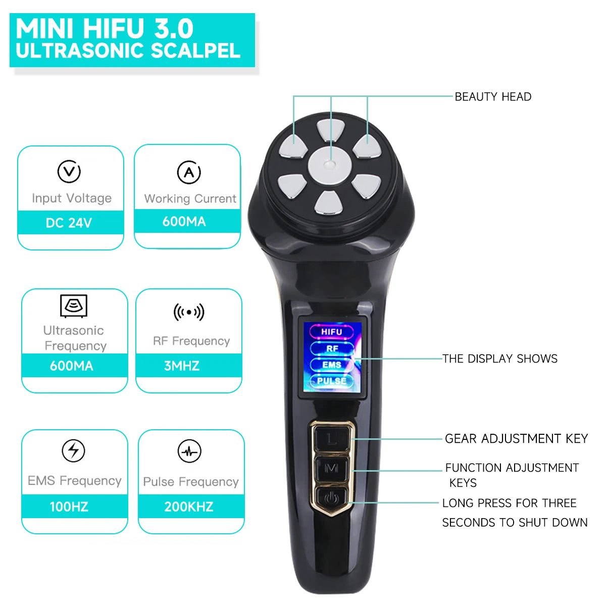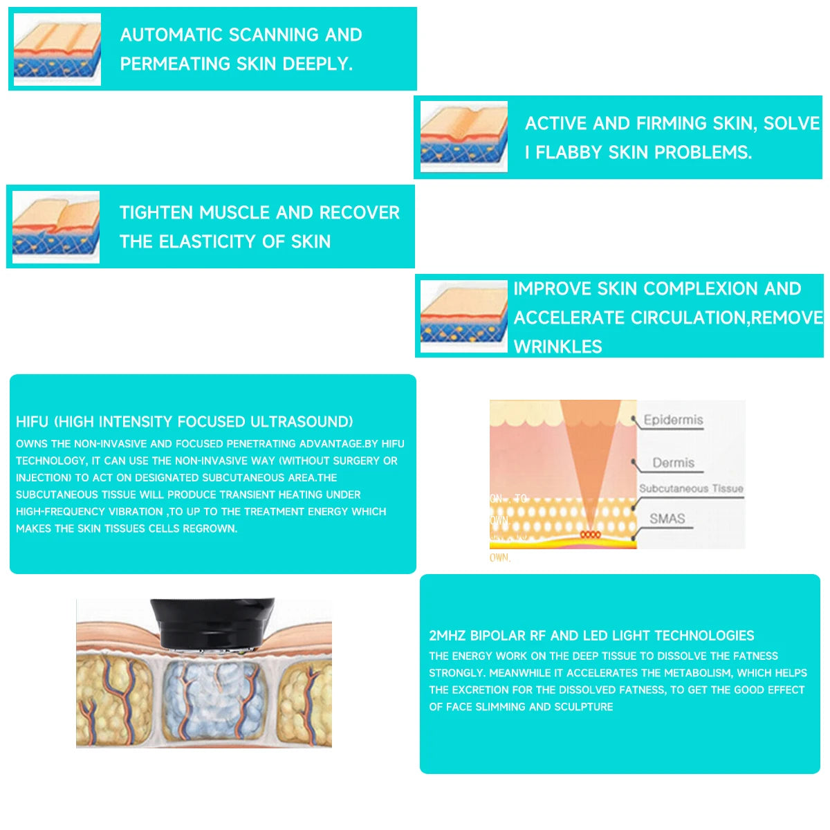 1. The upgraded version of the four-in-one Ultherapy Beauty Device is powered by HIFU ultrasound/RF RF/EMS micro