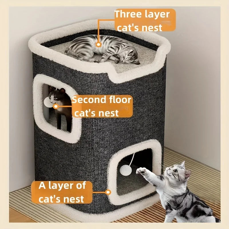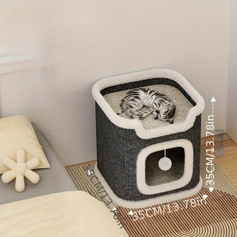 New Cat House Deluxe Square Cat Condo With Scratching Posts Nylon Cat House Bed with Scratching Board Cat Play Toy Shelter