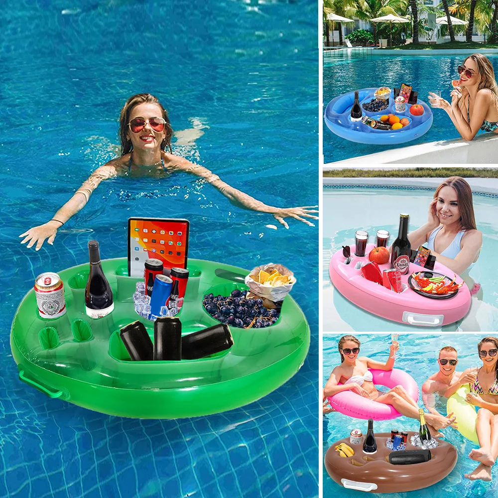 New Summer Party Bucket Cup Holder Inflatable Pool Float Beer Drinking Cooler Table Bar Tray Beach Swimming Ring Accessories