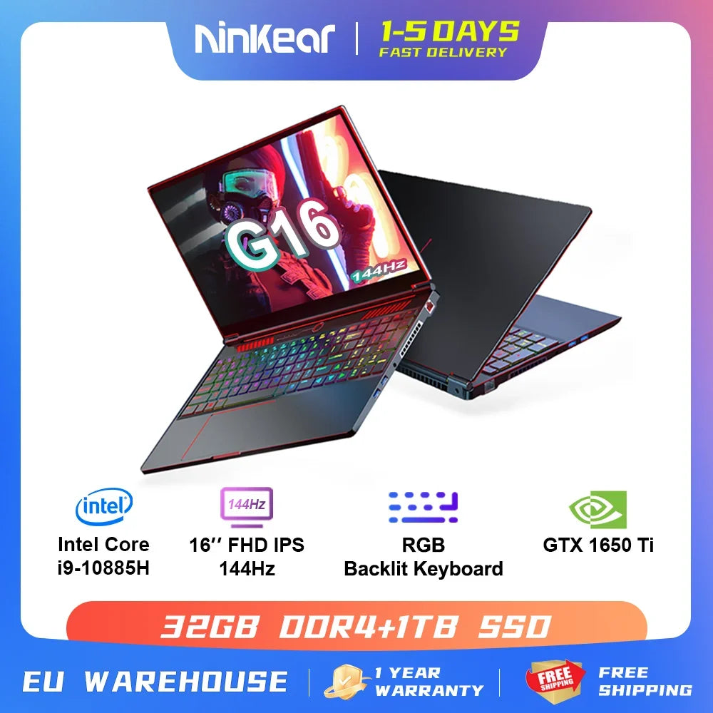 Ninkear G16 Gaming Laptop 16-Inch Intel Core I9-10885H Nvidia GTX1650Ti Notebook 144Hz 32GB+1TB SSD Windows 11 Gaming Notebook