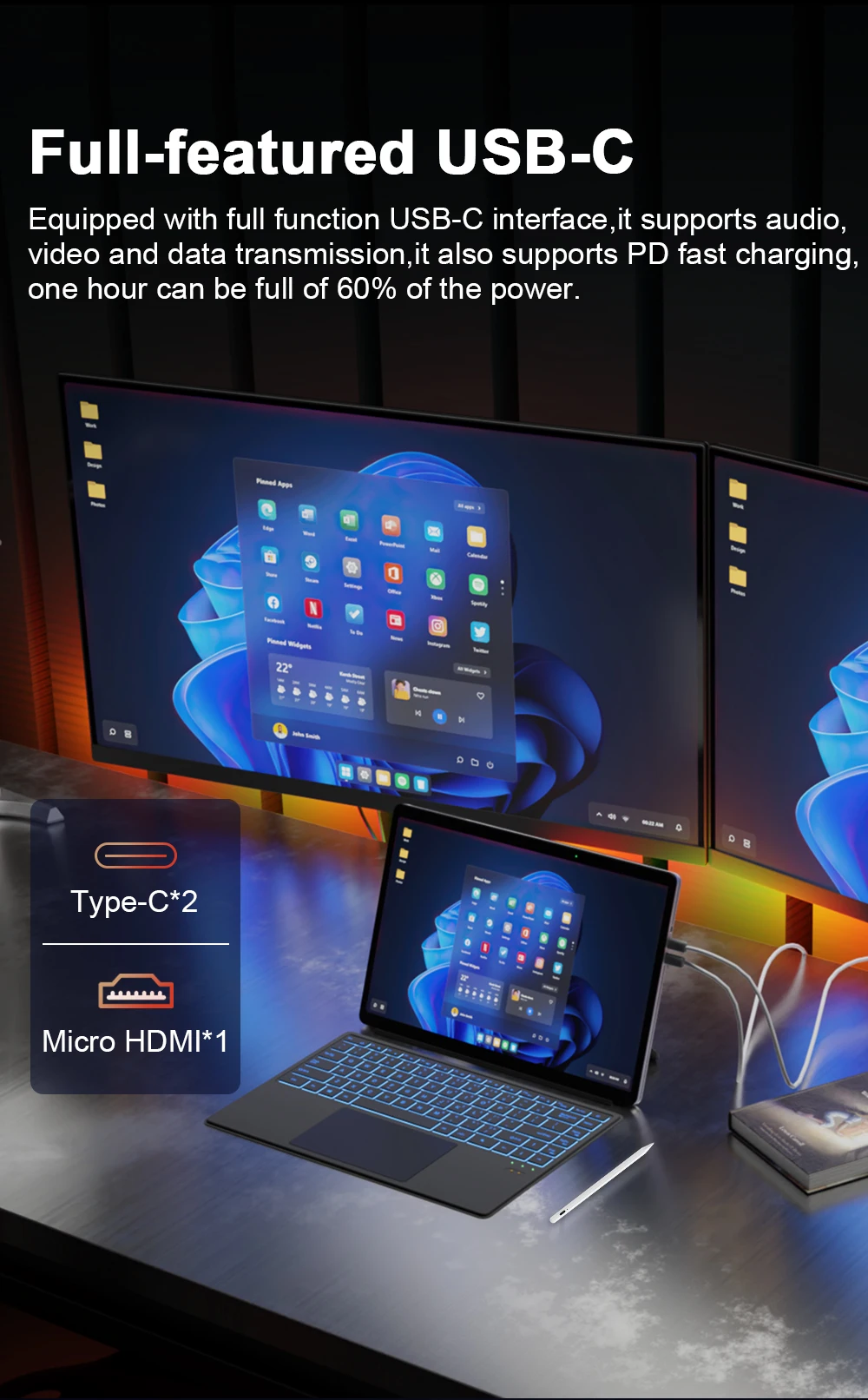 There is also a universal stylus that is matched with the T40 laptop. This stylus can accurately capture your every subtle movement, whether it is drawing, writing or annotating, it can achieve precise control. Make your operations more convenient and improve work efficiency and creativity.