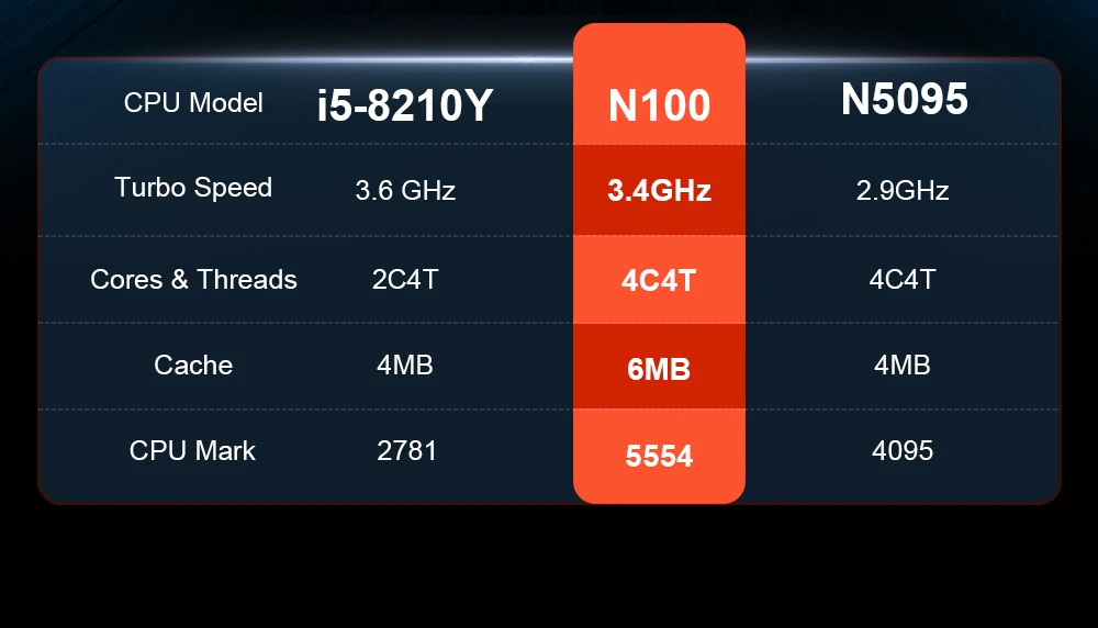Ninkear T40 is equipped with Intel N100 Alder Lake-N CPU. This processor has strong performance. Whether it is processing complex data analysis, running large software, or performing multi-tasking operations, it can easily handle it, making your work and entertainment more efficient. Smooth.