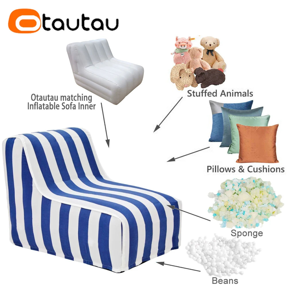 OTAUTAU Portable Outdoor Inflatable Sofa Bed Ottoman Footrest Stool Beach Swim Pool Lounger Removalbe Washable Pouf Cover SF163