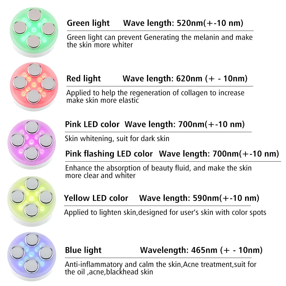 3.Five colors of light (red/green/orange/blue/purple) are suitable for different skin types and meet the needs of different groups of people.
