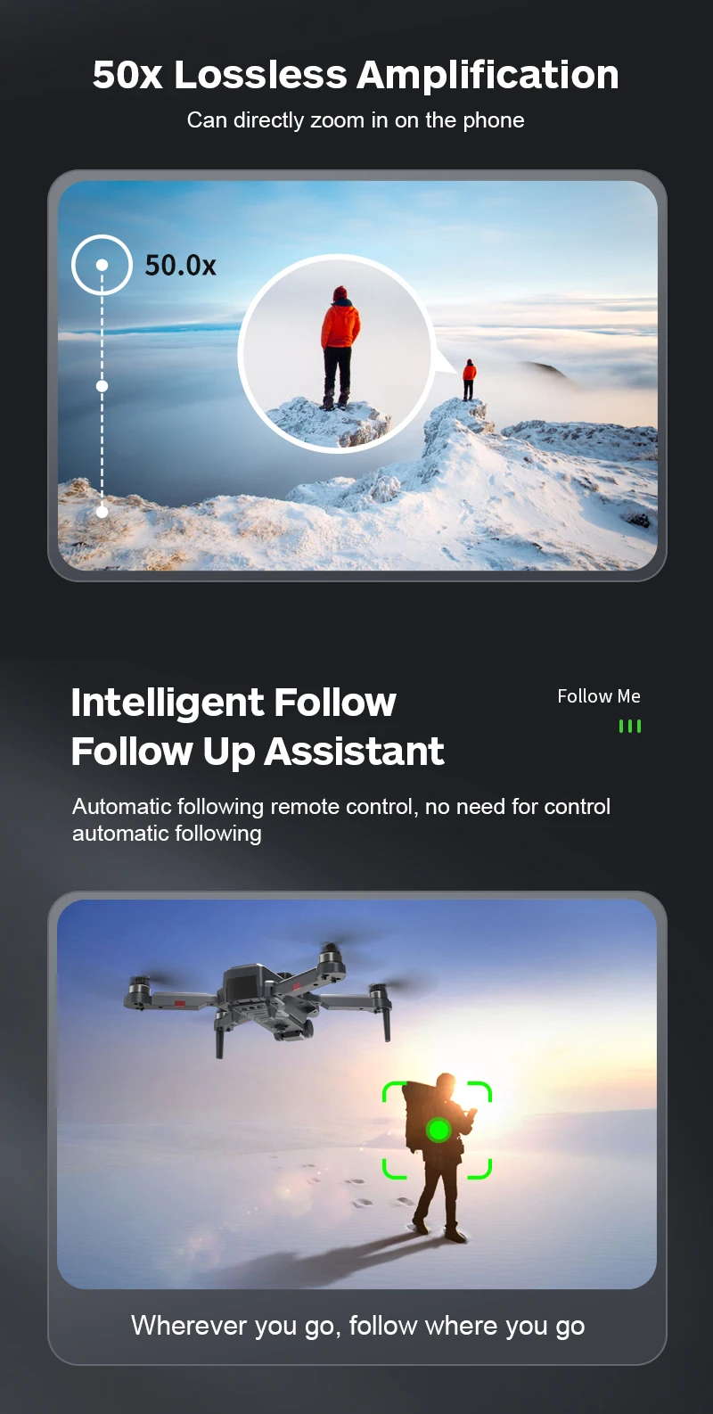 50xLossless Amplification Can directly zoom in on the phone Intelligent Follow Follow Up Assistant Automatic following remote control, no need for controlautomatic following Wherever you go, follow where you go