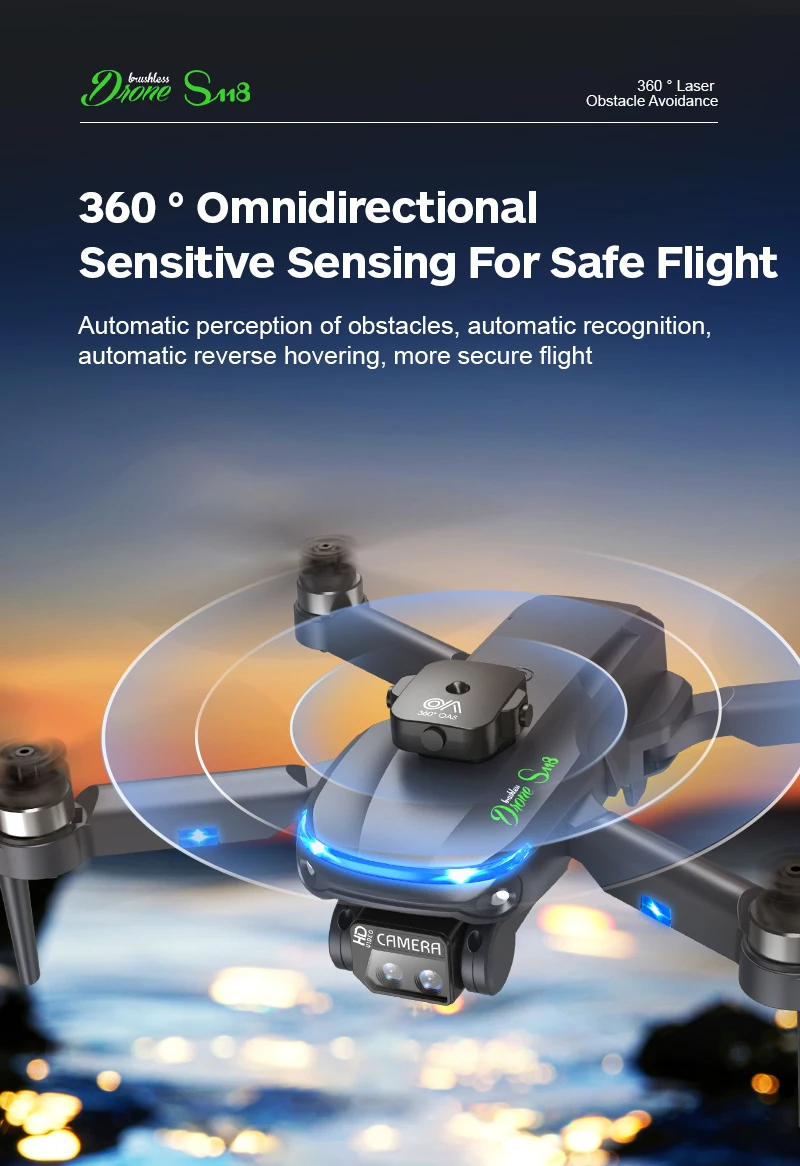 8K PixelsUltra HighDefinition PixelsBrushless MotorStrong Power One Click TakeoffAnd LandingOne Click Intelligent Return Image TransmissionReal-time Preview360 . RollOne Click Stunt Roll,360 ObstacleAvoidanceAvoiding Collisions,Optical Flow Localization Stable Flight