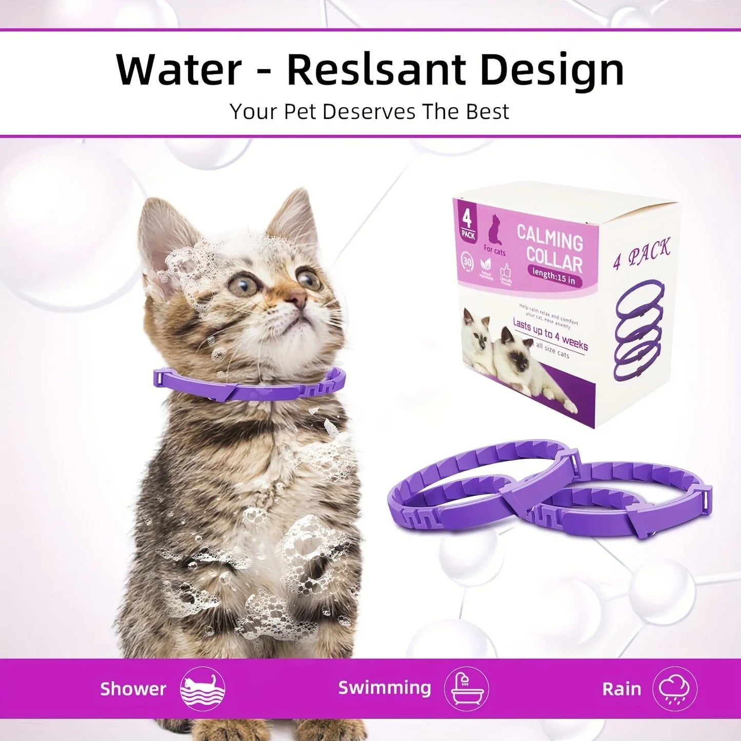 Soothe & Comfort Your Cat: 4-Pack Adjustable Calming Pheromone Collars with Safety Breakaway - Fits All Sizes