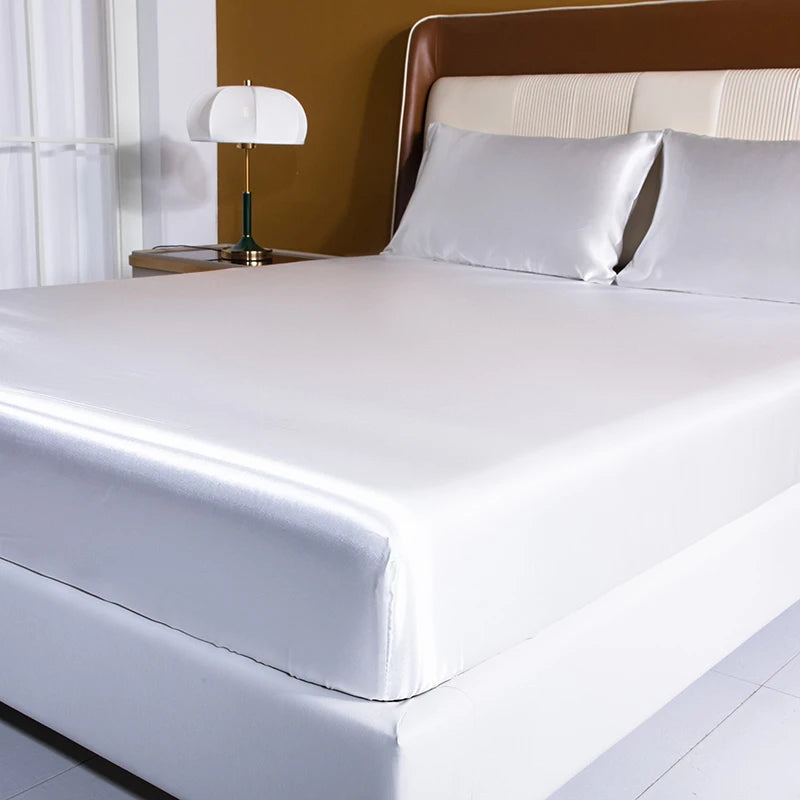 White High-End Rayon Satin 4pcs Fitted bed sheet Set Silky